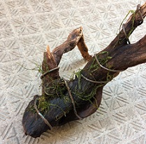 写真が実物です。 ご存じない方はモスが少ないように見えるかも知れませんが、流木に活着すると同時に伸びてきますのでね。 こんなもんです。 むしろモスが重ならないよう薄く広げると枯れる部分も少なくなり、上手くいきます。 こういうのは ほんとセンスが問われますよ。 私はすごく苦手です。(苦笑) 美的センスって不思議だなー。 美しく出来る人は出来る、出来ない人は出来ない。 でも うまく出来てないってことは 自分で分かるんですよねー。(悲) まあいいですよ。 モスは どっちみち モサっと伸びてきたら見た目 変わっちゃうんですから。 ただグリーンレースは もう少し本物のツルが絡んだように巻きたかったな。 光が強くて 水槽内の動物VS植物のバランスが良いと グングン伸びてきます。 その時カットして整えましょう。
